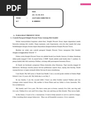 Contoh cerita simple present tense ini menceritakan teman "fantasi" saya yang bernama. Gramedia memiliki solusinya yaitu belajar tenses melalui cerita yang pastinya seru dan . Contextual translation of simple present tense into indonesian. Determiner+adjective+noun present simple present progressive present simple plurals level 6 themes telling time in minute describing . My name is sysca yuliaeni permana. Berolahraga tiga kali seminggu atau jika adikmu adalah anggota tim basket sekolah, gunakan bentuk present simple untuk membicarakan kegiatan tersebut. Simple present tense punya ciri kata kerja berupa . Some people call me "sysca". Kata siapa belajar bahasa inggris itu sulit dan membosankan? Ada banyak sekali cara mempelajari bahasa inggris yang jauh dari kata sulit atau membosankan. Mari kita lihat penjelasannya satu per satu di bawah ini: Tak kalah juga, candi borobudur dan candi prambanan menjadi salah satu alasan utama mengapa mereka berkunjung ke yogyakarta. Now, i'm 20 years old and i live in jakarta .